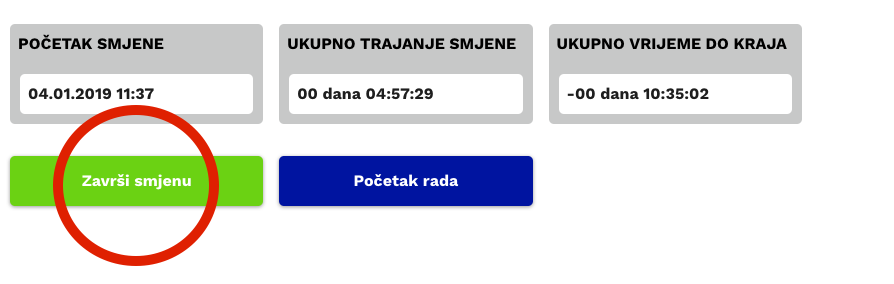 - Pregled smjene Sustav će vam prikazati osnovne podatke o smjeni